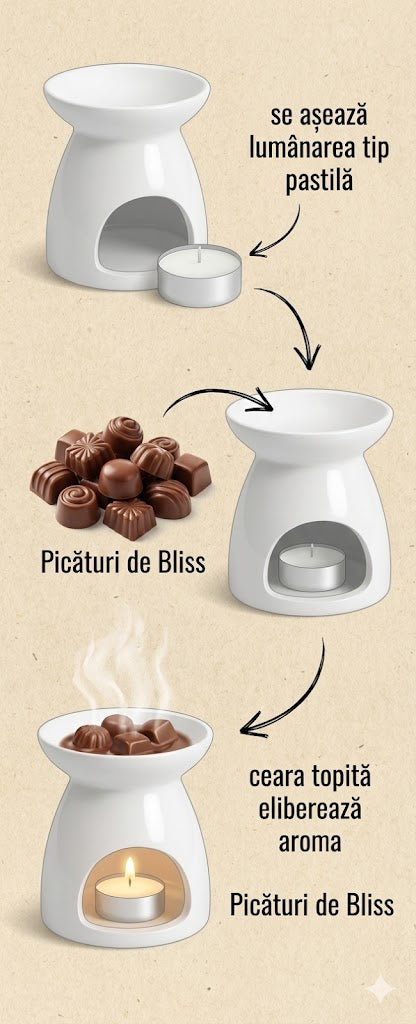 Iar magia începe: pe măsură ce ceara se topește, eliberează aroma și… un moment pentru tine.
